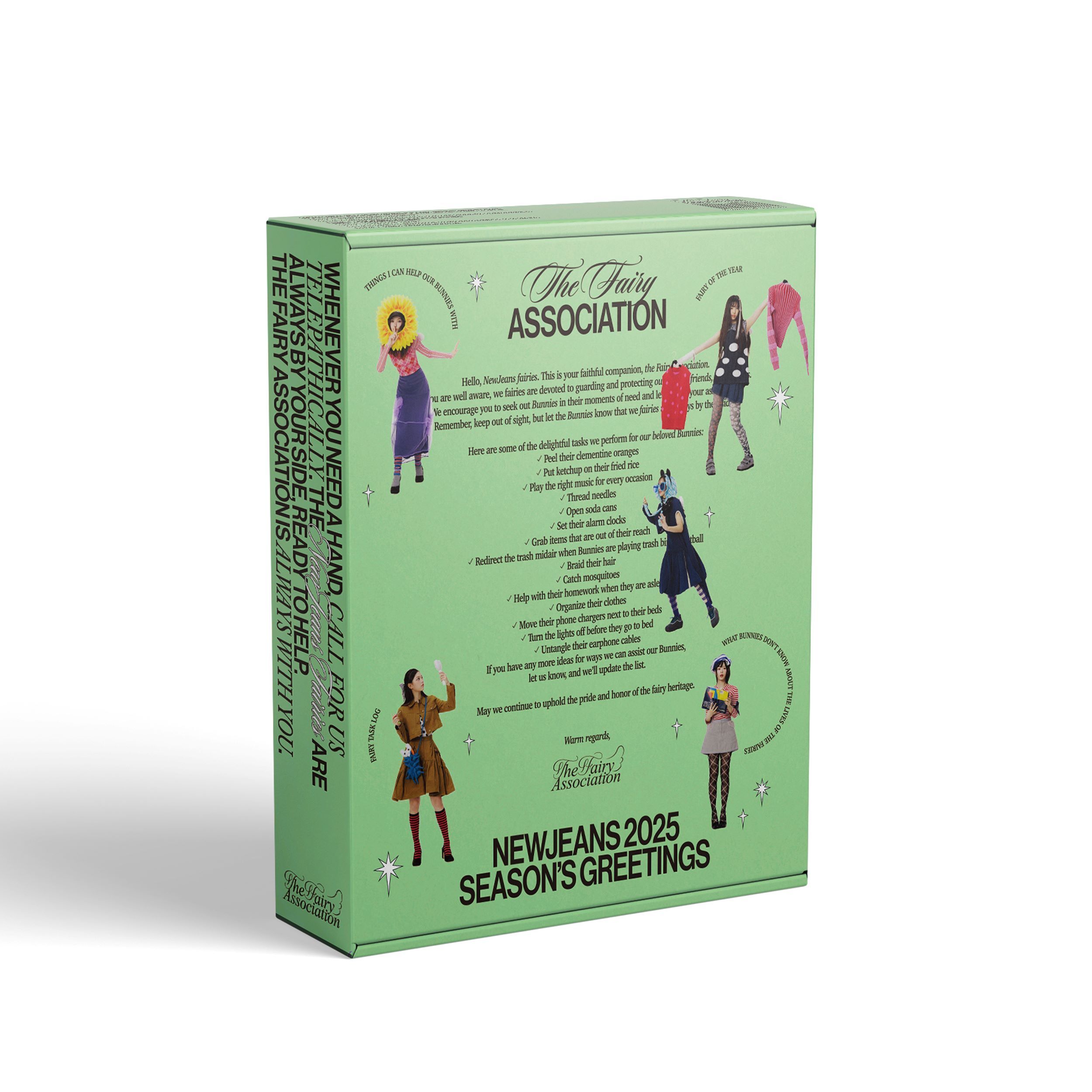 Bunniesが知らない妖精たちの生活が詰まった「NewJeans 2025 SEASON'S GREETINGS」は、2024年11月27日(水)11:00から予約販売を開始し、2024年12月24日(火)より順次お届け予定です。
